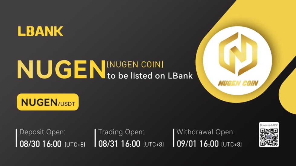 INTERNET CITY, DUBAI, Aug. 29, 2022 – LBank Exchange, a global digital asset trading platform, will list NUGEN on August 31, 2022. For all users of LBank Exchange, the NUGEN/USDT trading pair will be officially available for trading at 16:00 (UTC+8) on August 31, 2022.