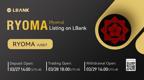 INTERNET CITY, DUBAI, Mar. 25, 2022 – LBank Exchange, a global digital asset trading platform, will list Ryoma (RYOMA) on March 28, 2022. For all users of LBank Exchange, the RYOMA/USDT trading pair will be officially available for trading at 18:00 (UTC+8) on March 28, 2022.