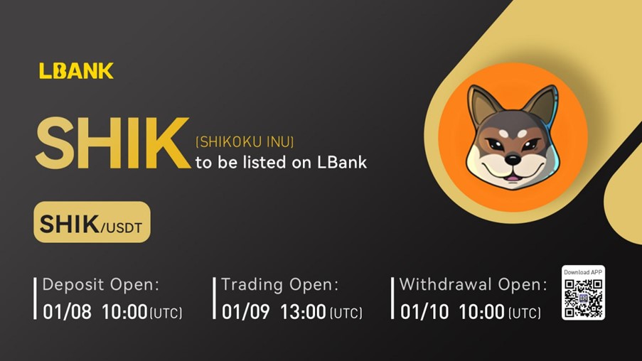 INTERNET CITY, DUBAI, Jan 6, 2023 – LBank Exchange, a global digital asset trading platform, will list SHIKOKU INU (SHIK) on January 9, 2023. For all users of LBank Exchange, the SHIK/USDT trading pair will be officially available for trading at 13:00 UTC on January 9, 2023.