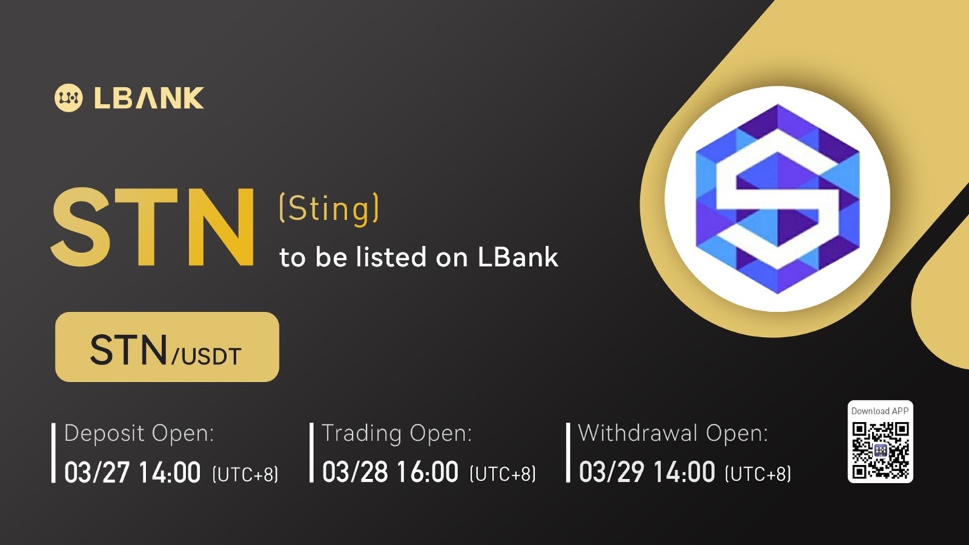 INTERNET CITY, DUBAI, Mar. 21, 2022 – LBank Exchange, a global digital asset trading platform, will list STING (STN) on March 28, 2022. For all users of LBank Exchange, the STN/USDT trading pair will be officially available for trading at 16:00 (UTC+8) on March 28, 2022.