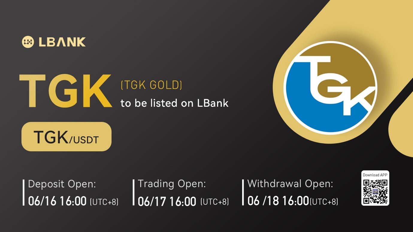 INTERNET CITY, DUBAI, Jun. 15, 2022 – LBank Exchange, a global digital asset trading platform, will list TGK GOLD (TGK) on June 17, 2022. For all users of LBank Exchange, the TGK/USDT trading pair will be officially available for trading at 16:00 (UTC+8) on June 17, 2022.