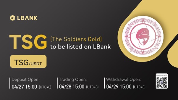 INTERNET CITY, DUBAI, Apr. 25, 2022 – LBank Exchange, a global digital asset trading platform, will list The Soldiers Gold (TSG) on April 28, 2022. For all users of LBank Exchange, the TSG/USDT trading pair will be officially available for trading at 15:00 (UTC+8) on April 28, 2022.