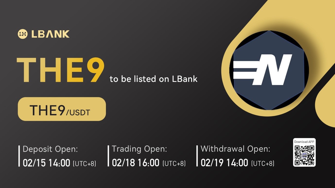 INTERNET CITY, DUBAI, Feb. 15, 2022 – LBank Exchange, a global digital asset trading platform, will list THE9 on February 18, 2022. For all users of LBank Exchange, the THE9/USDT trading pair will be officially available for trading at 16:00 (UTC+8) on February 18, 2022.