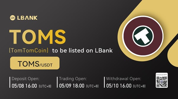 INTERNET CITY, DUBAI, May. 9, 2022 – LBank Exchange, a global digital asset trading platform, will list TomTomCoin (TOMS) on May 9, 2022. For all users of LBank Exchange, the TOMS/USDT trading pair will be officially available for trading at 18:00 (UTC+8) on May 9, 2022.