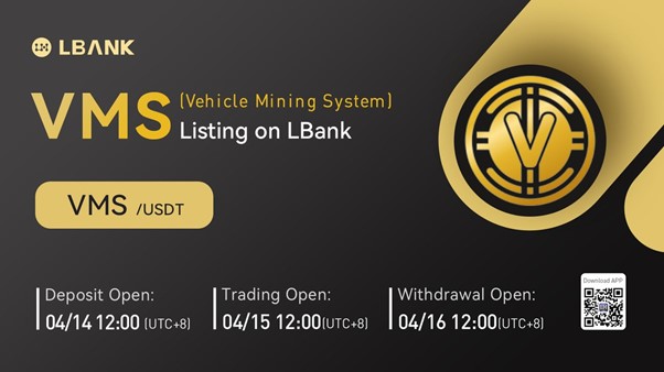 INTERNET CITY, DUBAI, Apr. 12, 2022 – LBank Exchange, a global digital asset trading platform, will list Vehicle Mining System (VMS) on April 15, 2022. For all users of LBank Exchange, the VMS/USDT trading pair will be officially available for trading at 12:00 (UTC+8) on April 15, 2022.