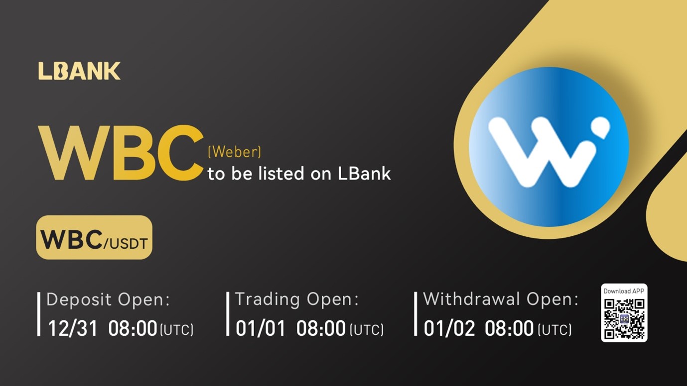 INTERNET CITY, DUBAI, Dec 30, 2022 – LBank Exchange, a global digital asset trading platform, will list Weber (WBC) on January 1, 2023. For all users of LBank Exchange, the WBC/USDT trading pair will be officially available for trading at 8:00 UTC on January 1, 2023.