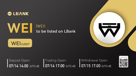 INTERNET CITY, DUBAI, Jul. 12, 2022 – LBank Exchange, a global digital asset trading platform, will list WEIcrypto (WEI) on July 14, 2022. For all users of LBank Exchange, the WEI/USDT trading pair will be officially available for trading at 17:00 (UTC+8) on July 14, 2022.