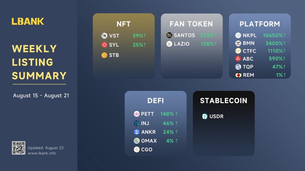 INTERNET CITY, DUBAI, Aug. 22, 2022 –As a world class digital asset exchange, LBank continues to focus on providing its users quality projects to participate in. Here is a weekly report made by LBank Exchange presenting this week’s exciting new listings and a summary of the ones listed last week, offering users more information to help better understand these unique opportunities.