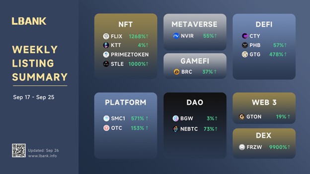 INTERNET CITY, DUBAI, Sep. 26th, 2022 –As a world class digital asset exchange, LBank continues to focus on providing its users quality projects to participate in. Here is a weekly report made by LBank Exchange presenting this week’s exciting new listings and a summary of the ones listed last week, offering users more information to help better understand these unique opportunities.