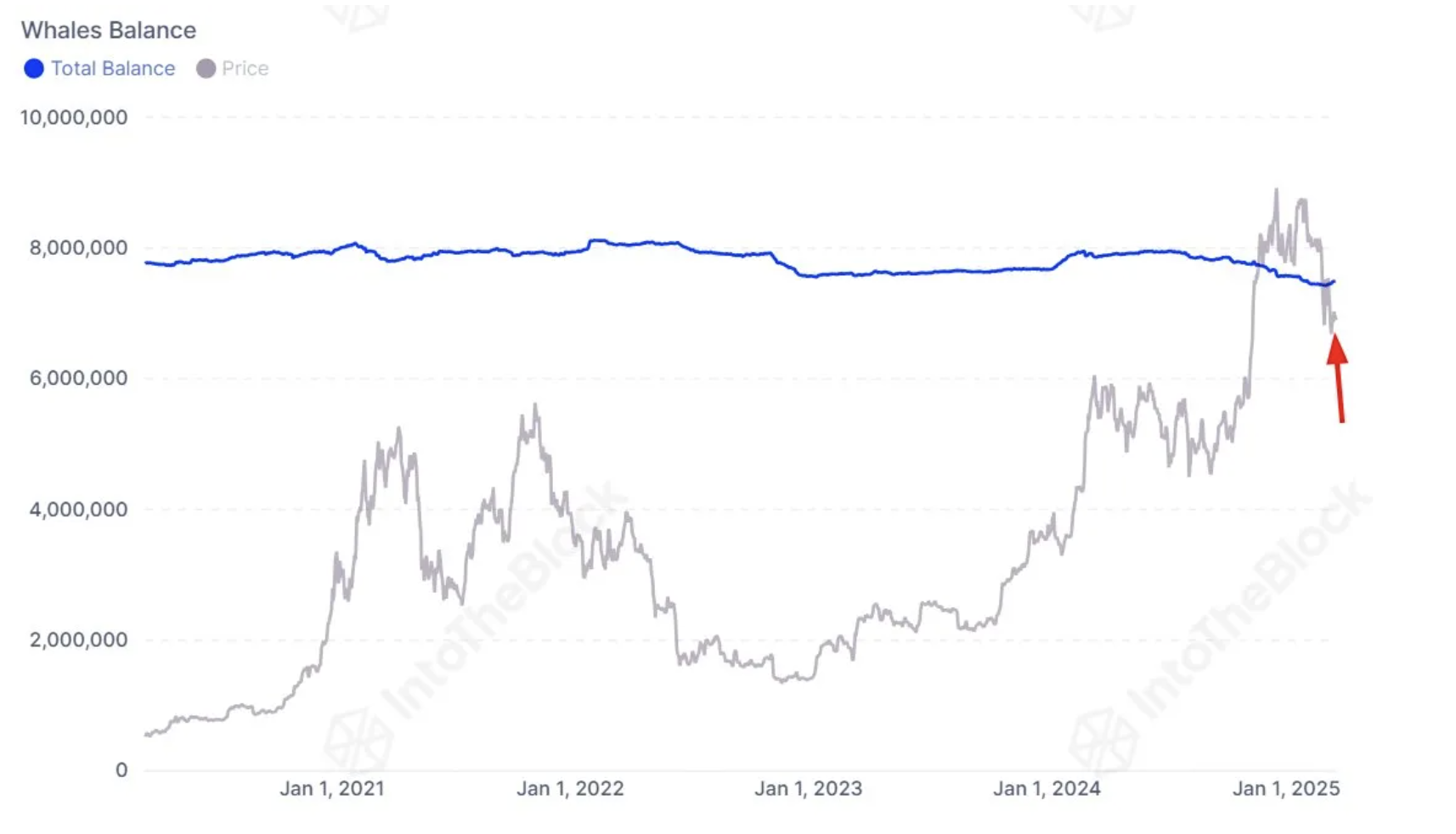 Le ultime informazioni della piattaforma IntoTheBlock su X mostrano che, da quasi un anno, i saldi delle balene di Bitcoin sono in calo, suggerendo una lunga fase di vendita.