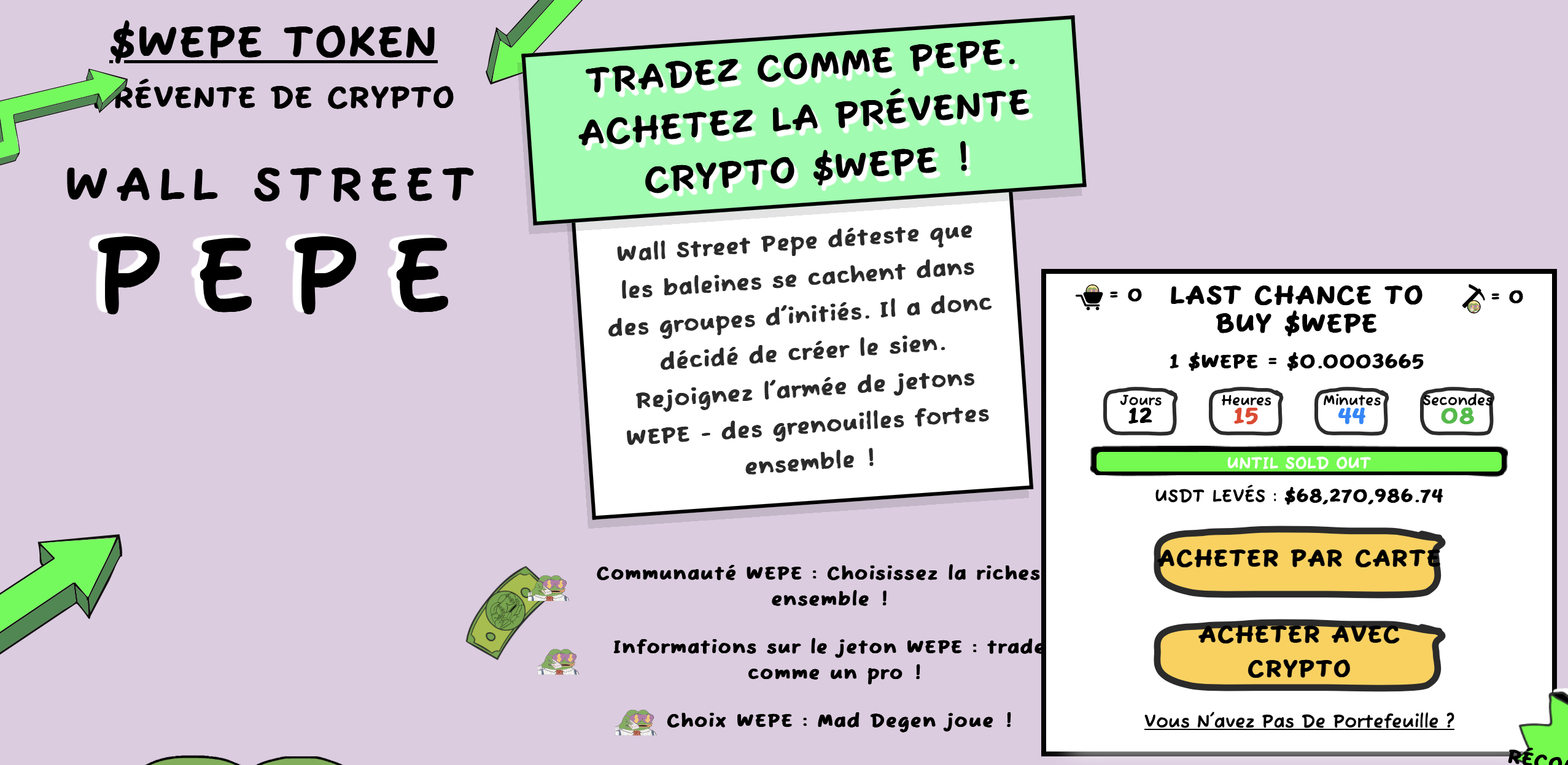 Wall Street Pepe ($WEPE) bat des records avec 68 millions de dollars levés en deux mois