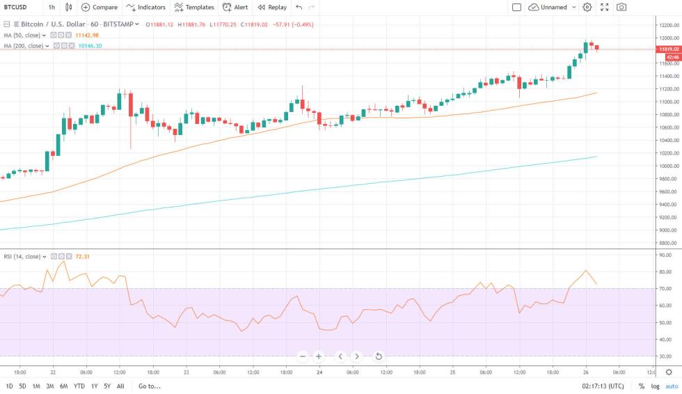 Analysts and traders have been keeping an eye on the charts for next possible levels of resistance. The previous, which has now turned support, is at $11,500. There has been no pullback whatsoever and there is very little technically stopping Bitcoin surging another thousand dollars up to $13k.