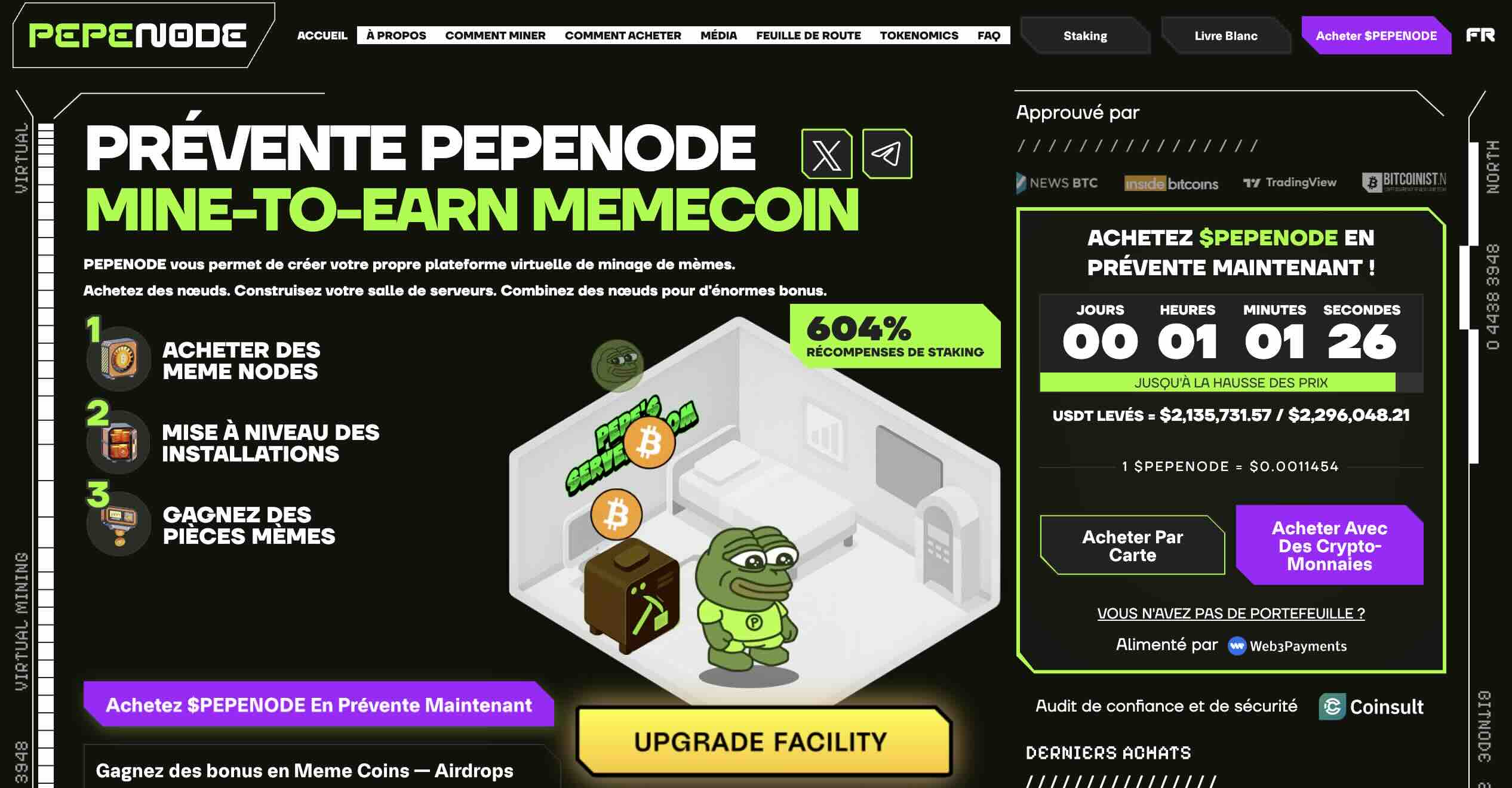 作為加密領域首個“Mine-to-Earn 迷因幣專案”,PepeNode 讓玩家能夠通過其虛擬挖礦遊戲直接獲得主流迷因幣,例如 Pepe(PEPE) 和 Fartcoin(FARTCOIN)。而這僅僅是開始——PepeNode 正準備讓玩家通過遊戲挖掘更多類型的迷因幣。