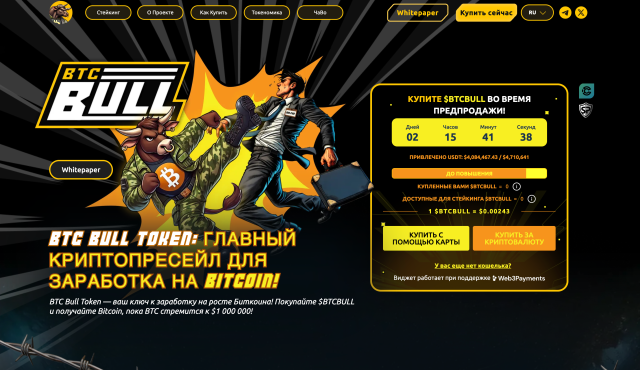 На данный момент пресейл $BTCBULL уже превысил $4 млн, а текущая цена токена — $0.00243. Аналитики прогнозируют рост до $0.00835 к концу года.