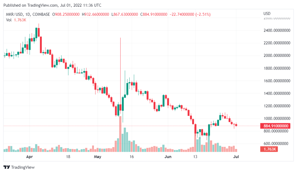 The Maker Project has MakerDAO as its governing body that makes major decisions concerning the protocol. The community issues DAI stablecoin, which is pegged on the U.S. dollar. The issuance of the stablecoin gets users through the exchange of almost 30 different crypto coins, including Wrapped BTC and Ether. CoinGecko revealed that MKR plummeted by 1.6% within the last 24 hours.