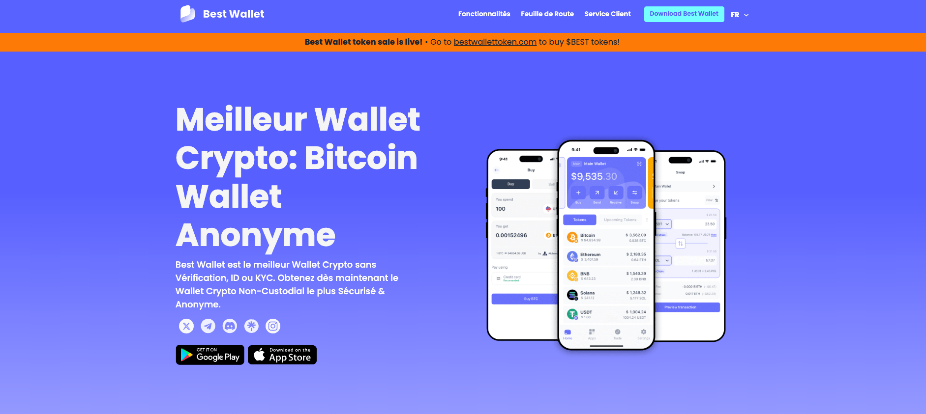 Best Wallet un choix particulièrement adapté aux échanges P2P grâce à la richesse de ses fonctionnalités : prise en charge de blockchains populaires comme Ethereum, Polygon ou BNB, outil d’analyse de marché intégré, accès aux meilleures préventes crypto, et un airdrop attractif de son token natif $BEST. Celui-ci offre des avantages exclusifs, comme des frais réduits ou des accès anticipés.