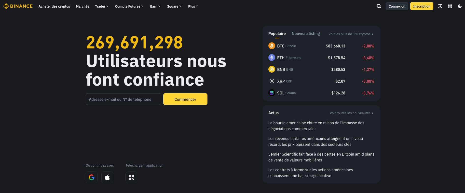 Binance est l’une des plateformes de trading de cryptomonnaies les plus populaires au monde, offrant une large gamme de services pour les investisseurs expérimentés. Fondée en 2017 par Changpeng Zhao (CZ), Binance est devenue la plus grande bourse de cryptomonnaies en termes de volume de transactions, avec plus de 250 millions d’utilisateurs dans plus de 180 pays. La plateforme se distingue par ses fonctionnalités avancées, telles que le trading de futures et sur marge, le trading P2P, ainsi que de nombreux outils professionnels pour affiner les stratégies de trading.