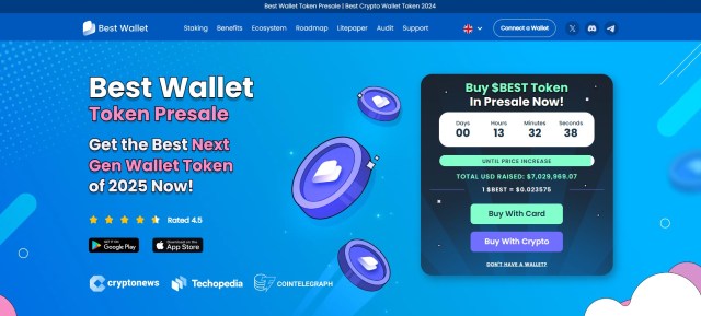 Best Wallet Token offre aussi la possibilité aux « early-adopters » de staker leurs jetons avec un APY boosté pendant cette phase. Au moment de mettre cet article en page, le token $BEST est proposé au tarif de 1 $BEST = $0.025645. Depuis son lancement en novembre 2024, la prévente Best Wallet Token a déjà réussi à lever plus de 7 millions de dollars. La prévente devrait s’étaler sur 100 rounds différents pour une fin prévue le 31 mai 2025. Après cette date, l’actif sera listé sur différents exchanges.
