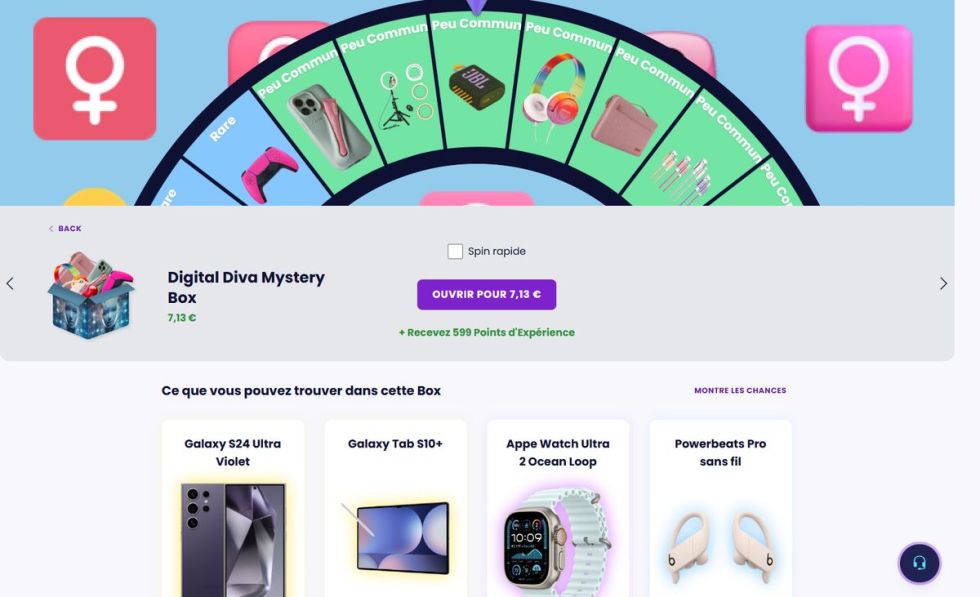 - Type de Giveaway : Mystery boxes avec lots garantis, gains par points.