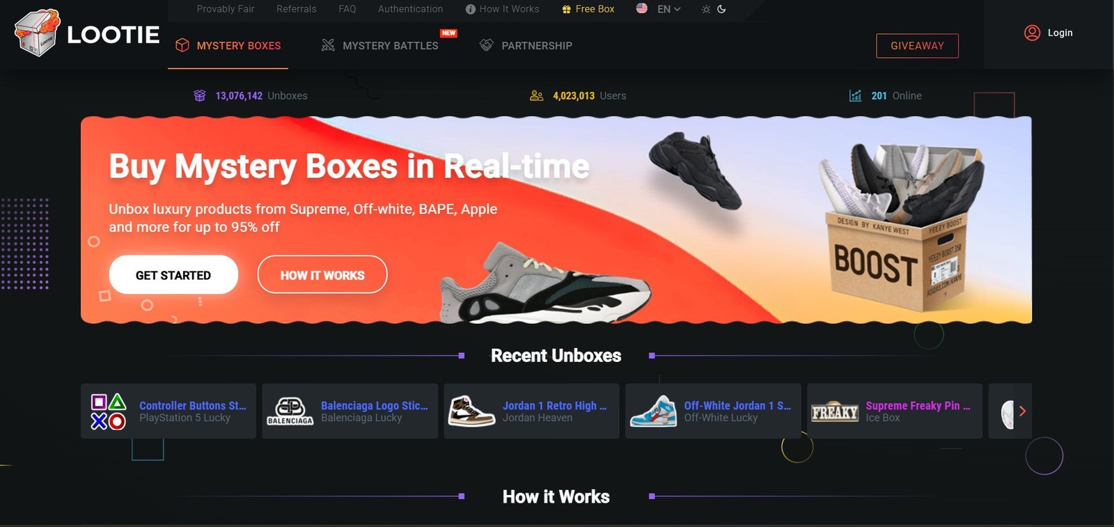 A Lootie, por sua vez, tem distribuição global e foca especialmente em marcas renomadas, como Supreme, Gucci e Apple. Da mesma forma que as demais, a plataforma permite a abertura imediata das caixas misteriosas logo após a compra.