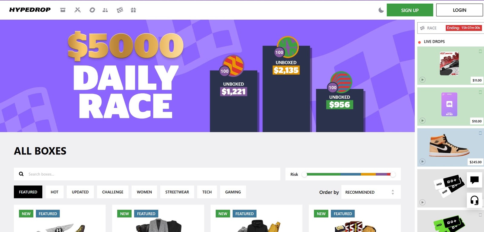 A HypeDrop é uma das plataformas mais conhecidas para a compra de caixas misteriosas virtuais. Um de seus diferenciais é a ampla variedade de produtos, desde eletrônicos e acessórios de moda itens de luxo de alto valor.