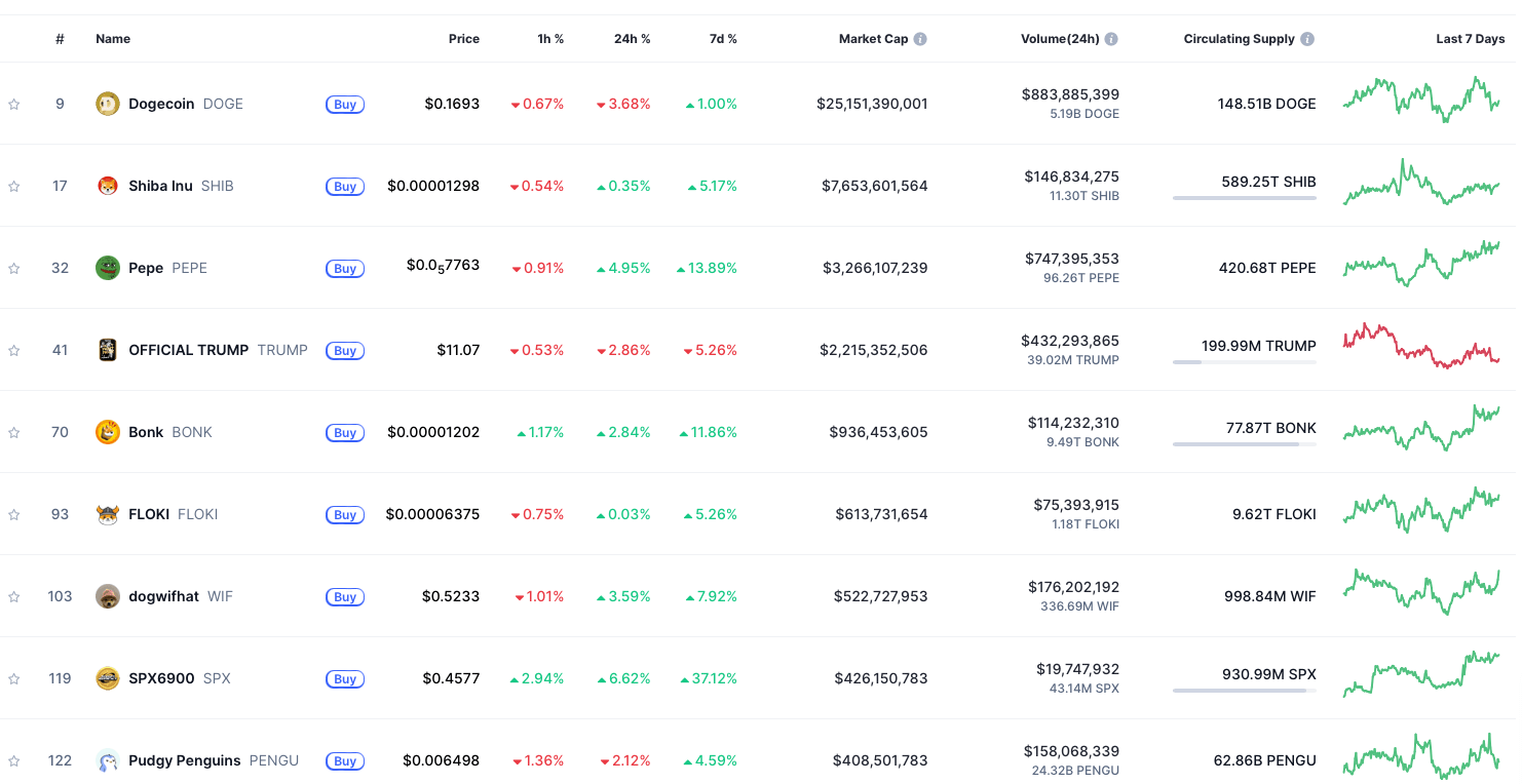 Pandangan optimistis terhadap crypto ini kembali menempatkan meme coin dalam sorotan utama. Beberapa token seperti Dogecoin ($DOGE), Shiba Inu ($SHIB), Pepe ($PEPE), dan Bonk ($BONK) mengalami kenaikan nilai dalam satu hari terakhir.
