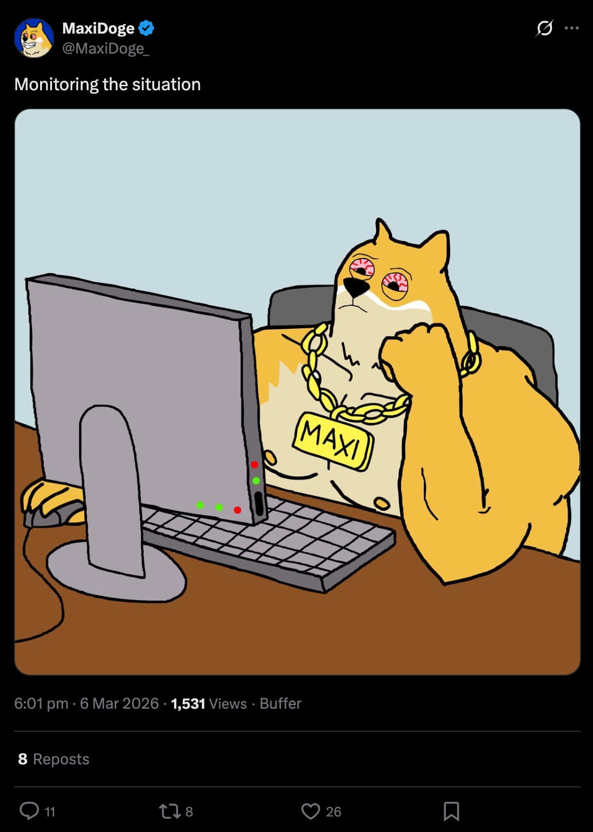 Analizando las cifras, el mercado cripto se encuentra en una posición inesperadamente sólida en este momento, especialmente considerando la situación en Irán, que ha causado una enorme turbulencia en los mercados de finanzas tradicionales(TradFi) recientemente.