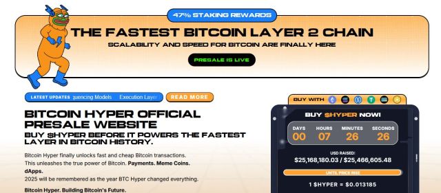 - Bitcoin Hyper: Erste Bitcoin Layer 2 mit Solana VM. Presale bei 25,16 Millionen US-Dollar, Staking mit bis zu 47 % APY