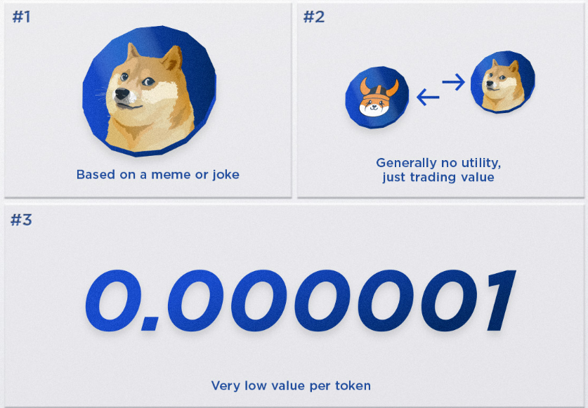 Meme coiny jsou kryptoměny inspirované internetovými memy, které sloužily pouze pro zábavu. Díky silné komunitě a virálnímu marketingu mohou rychle nabrat na hodnotě a spousta nových projektů již díky neustálému vývoji nabízí svým investorům řadu inovativních funkcí, které mají své využití. Meme coiny se vyznačují volatilním charakterem.