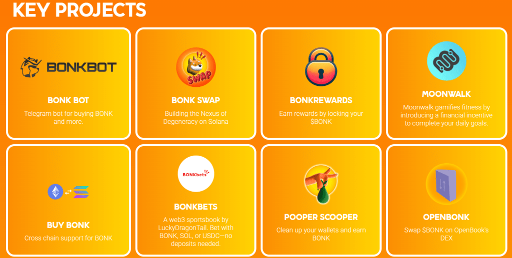 Na rozdíl od většiny jiných meme coinů má Bonk jasný cíl. Kromě zábavy chce podpořit širší přijetí blockchainu Solana. Projekt má ambice v oblasti multi-chain, DeFi a herních prvků. Token podporuje přes 40 decentralizovaných i centralizovaných burz jako například Binance, Coinbase a Bybit. Bonk v rámci ekosystému umožňuje také staking tokenu $BONK.