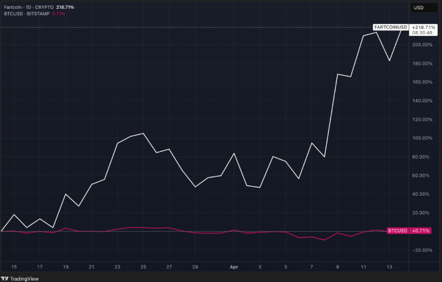지난 3월부터 비트코인 가격이 대체로 횡보세를 보이는 가운데, $FARTCOIN은 뚜렷한 상승세를 나타내고 있는 것으로 알려졌다.