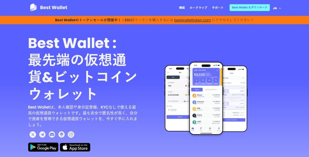 「Best Wallet」は直感的で簡単な操作が可能です。暗号資産取引を始める人にもピッタリ。そして、ビットコインを含む様々な仮想通貨に対応しており、手数料もリーズナブルです。
