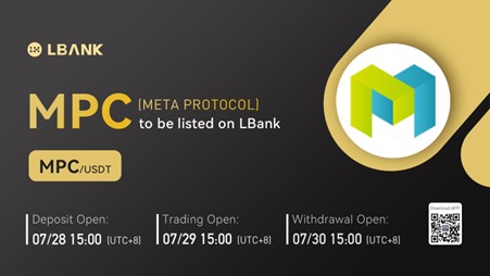 INTERNET CITY, DUBAI, Jul. 29, 2022 – LBank Exchange, a global digital asset trading platform, has listed META PROTOCOL (MPC) on July 29, 2022. For all users of LBank Exchange, the MPC/USDT trading pair is officially available for trading.