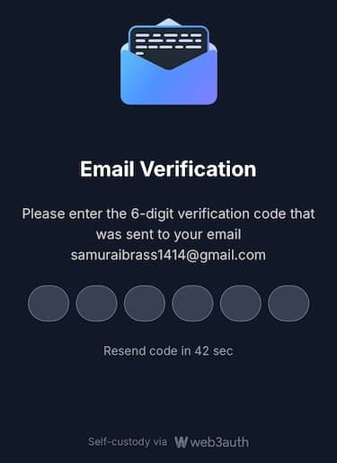 メール認証のために、メールアドレス宛に来た認証コードを入力してください。