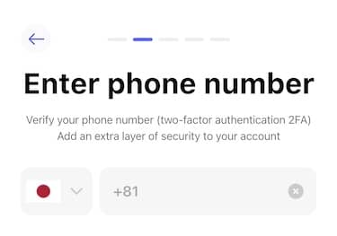 メール認証の後は、二段階認証の設定を行います。電話番号を入力して、認証を行ってください。