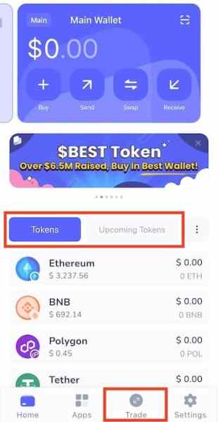 そのBest Walletの最大の特徴の一つが「Upcoming Tokens」機能です。この機能では有望なICO仮想通貨の先行セール情報を提供しており、利用者はこれらのトークンにアプリ内から安全に早期に投資することが可能です。