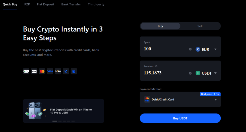 Достатъчно е да отворите секцията Quick Buy в MEXC, да изберете една от над 30 печеливши криптовалути, да посочите фиатната валута и да платите чрез Apple Pay или Google Pay. Потвърждението отнема секунди, а активите веднага пристигат във вашия MEXC акаунт – без излишни логини и сложни форми.