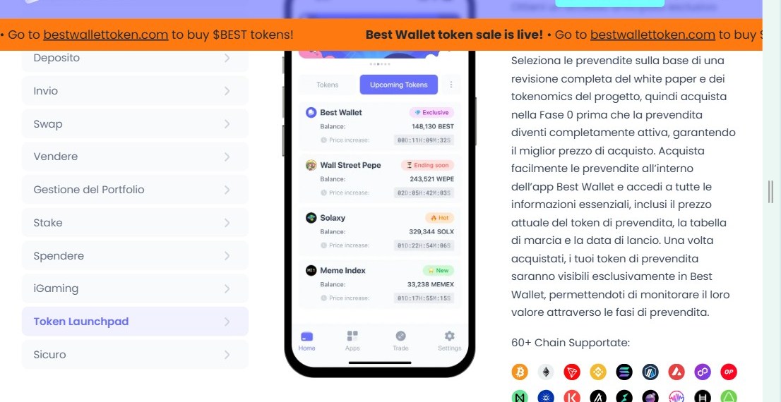 Se cerchi le migliori crypto presale, Best Wallet è tra le opzioni più complete in circolazione. Supporta più di 60 chain, tra cui Solana, Ethereum e Polygon. Best Wallet ha anche un suo token in-house $BEST, ottenibile in prevendita.
