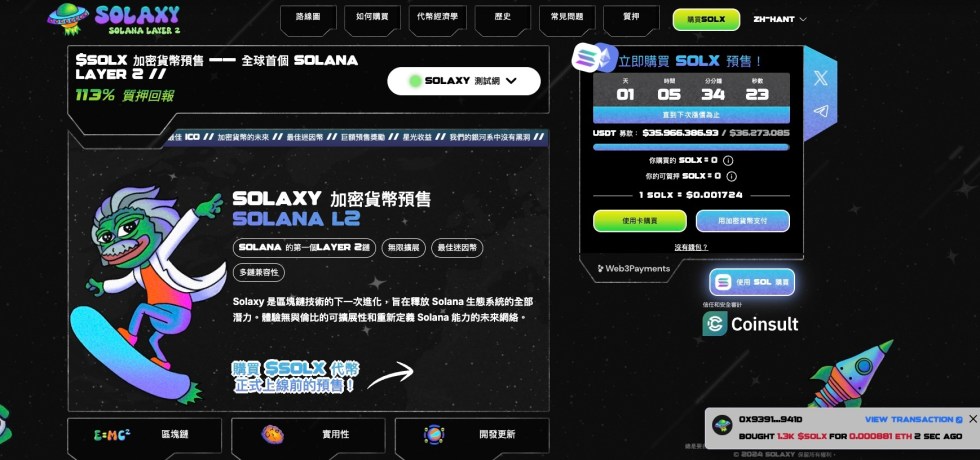 這些更新強化了Solaxy的可用性與開發節奏,也鞏固了其成為Solana基礎設施補強角色的定位。當迷因幣流量再次擁擠主鏈,Solaxy的價值便會隨之水漲船高。目前該項目預售金額已突破3,600萬美元,顯示市場資本正積極佈局未來Solana生態升級的重要一環。