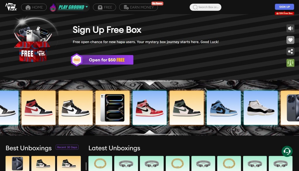 HapaBox utilise plusieurs voies pour vous divertir et vous garder branché. La plateforme est très facile à utiliser et détient un pool de jusqu’à 600 mystery box.