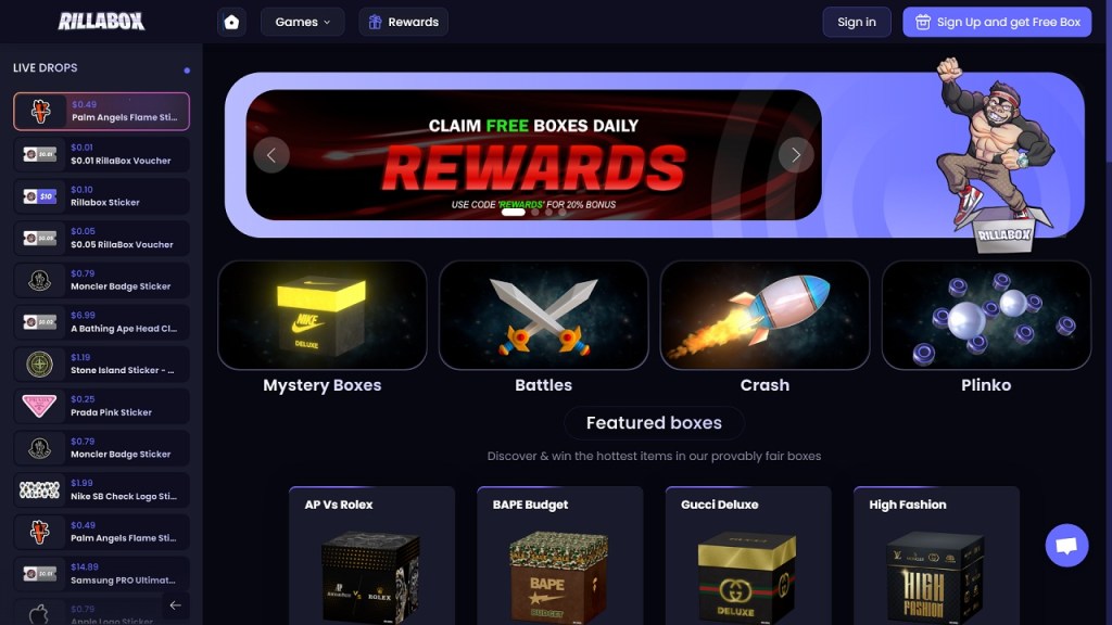 Les boîtes proposées ont chacune des dizaines d’articles, généralement plus de 20, vous donnant de multiples options intéressantes avec des chances variables. Le site web offre également la fonctionnalité de boîtes personnalisées, vous permettant de créer vos propres boîtes avec des contenus et des chances uniques.