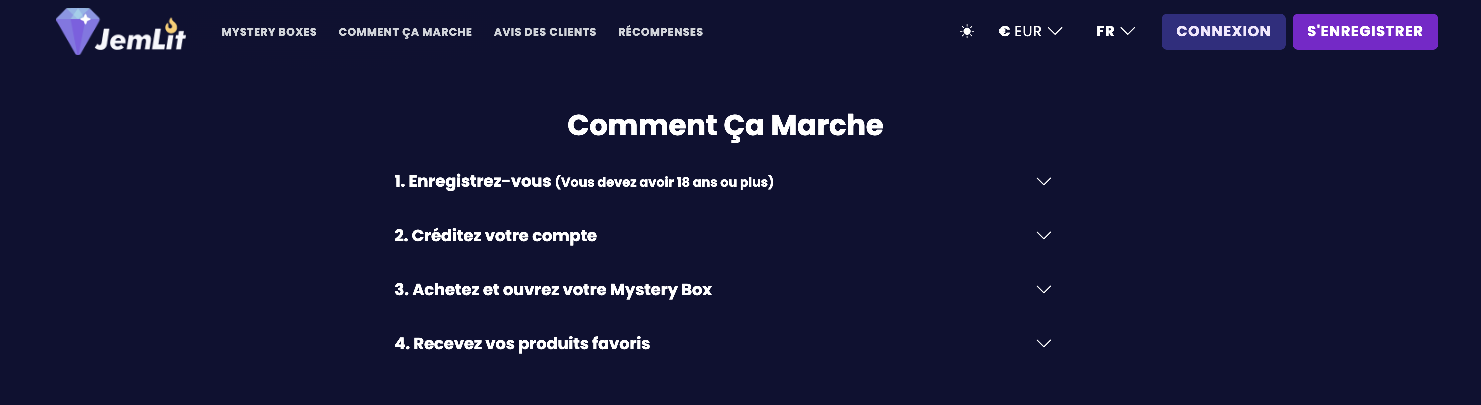 L’achat d’une Mystery Box est un processus simple et rapide sur Jemlit :