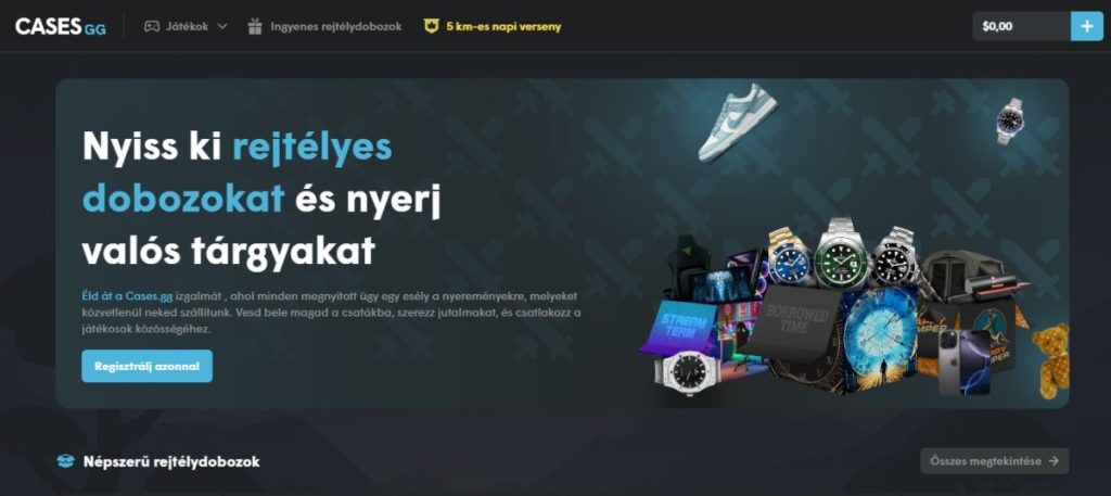 | Cases.gg | Játékosok, CS:GO skin rajongók | Speciális gaming mystery box-ok, közösségi események |