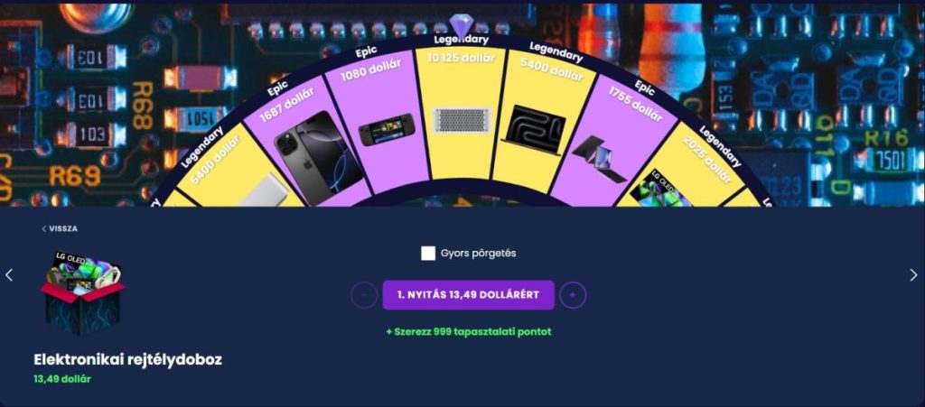 A platform kínálata kiterjed különféle kategóriákra: okoseszközök, gamer perifériák, divatmárkák és még kriptós nyeremények is elérhetők.