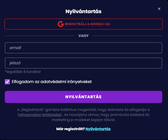 - Regisztráció és befizetés: Első lépésként csinálj egy felhasználói fiókot és fizess be.