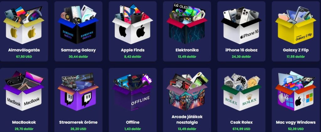 A kínálat rendkívül széles, az elektronikai eszközöktől kezdve a streetwear termékeken át a kriptovalutás ajándékokig. A boxok árkategóriái is változatosak, így bárki megtalálhatja a pénztárcájának megfelelő opciót. A weboldal kialakítása modern és könnyen kezelhető, ami különösen fontos azok számára, akik most próbálnák ki először a mystery box élményt.