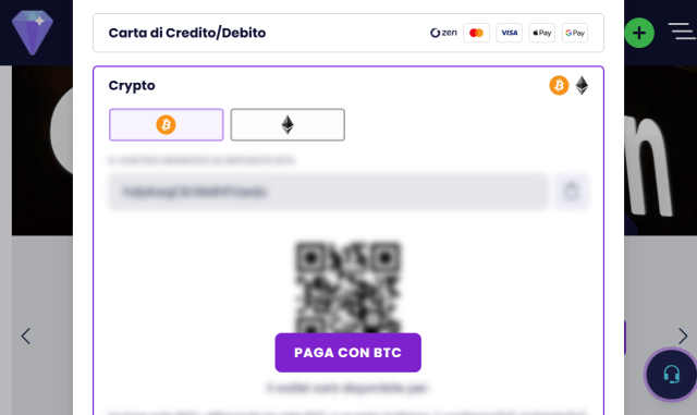 Puoi stanziare fondi sul tuo account in pochi secondi tramite Ethereum, Bitcoin oppure con metodi tradizionali come Visa, Mastercard, Apple Pay o Google Play. Nessuna verifica KYC è richiesta.