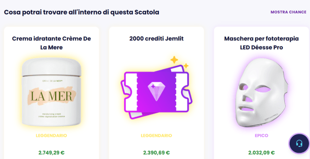 Puoi optare per la più audace Dyson VS Ghd da €35,73 oppure per l’accessibile Skin Care Wonderland da €15,15. Aggiungi la scatola makeup desiderata al carrello e clicca su “Conferma” per aprirla. Ricorda che non ci sono solo cofanetti per il mondo del make up, ma su Jemlit è possibile trovare anche mystery box per elettronica e tanto altro.