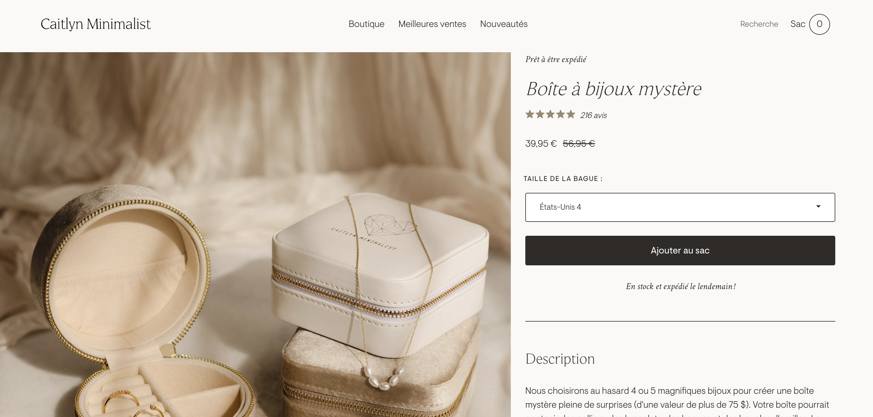 Chaque coffret mystery box bijoux contient 4 à 5 bijoux d’une valeur supérieure à 75$, parfaits pour les amateurs de designs minimalistes.