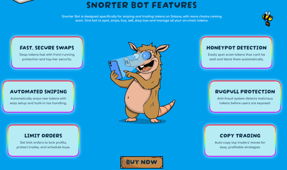 Той поддържа собствен бот, интегриран директно в Telegram – Snorter Bot. Притежанието на $SNORT отключва функции като автоматично участие при нови токен старти, копиране на сделки, размени, защита от измамни проекти и още.